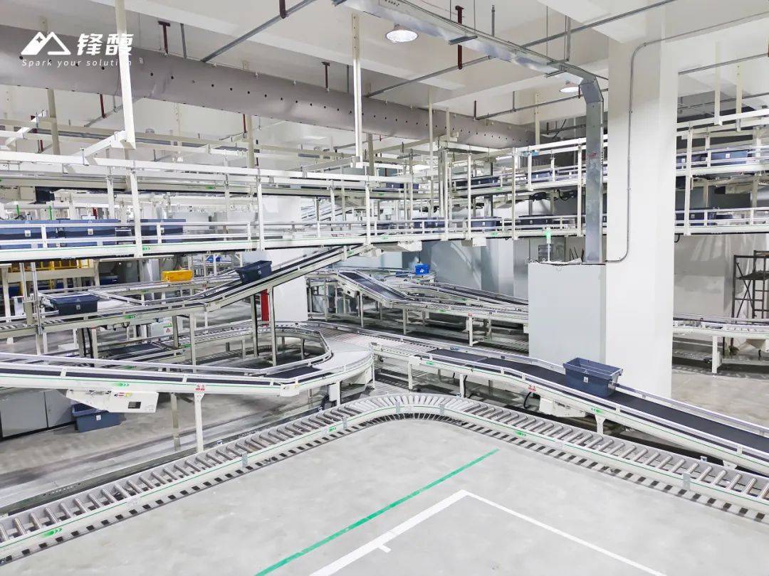 高效多穿出入庫輸送系統(tǒng)。該系統(tǒng)專為滿足多穿立體倉庫復(fù)雜、高密度出入庫需求而設(shè)計,支持跨樓層、大容量作業(yè),每小時處理能力2,400箱以上,集成拆零出庫回庫、多穿集貨入庫、換箱復(fù)核環(huán)線、人工揀選及空箱供給回流線、集貨等多流程于一體,通過智慧軟件平臺的智能調(diào)度,實(shí)現(xiàn)跨區(qū)域、跨樓層的無縫協(xié)同,優(yōu)化作業(yè)流程,減少等待時間。 一期設(shè)置6個多穿入庫口,確保了系統(tǒng)整體的高效運(yùn)轉(zhuǎn)與可擴(kuò)展性。