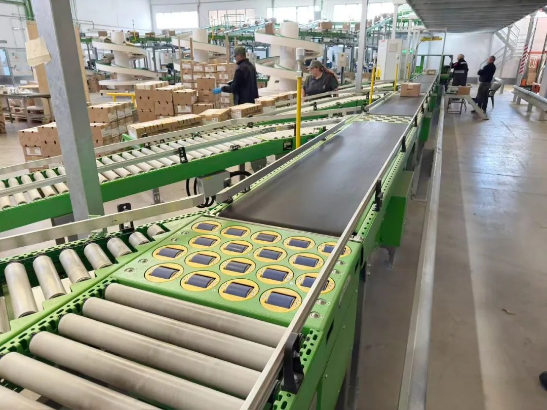 針對水果行業(yè)的特殊需求,在同一條滾筒線上同步實(shí)現(xiàn)未封口空紙箱進(jìn)料與已封裝滿箱出料。系統(tǒng)根據(jù)各包裝工位的實(shí)時狀態(tài),智能分配貨箱至最優(yōu)工位,并通過間距控制技術(shù)防止箱體碰撞。